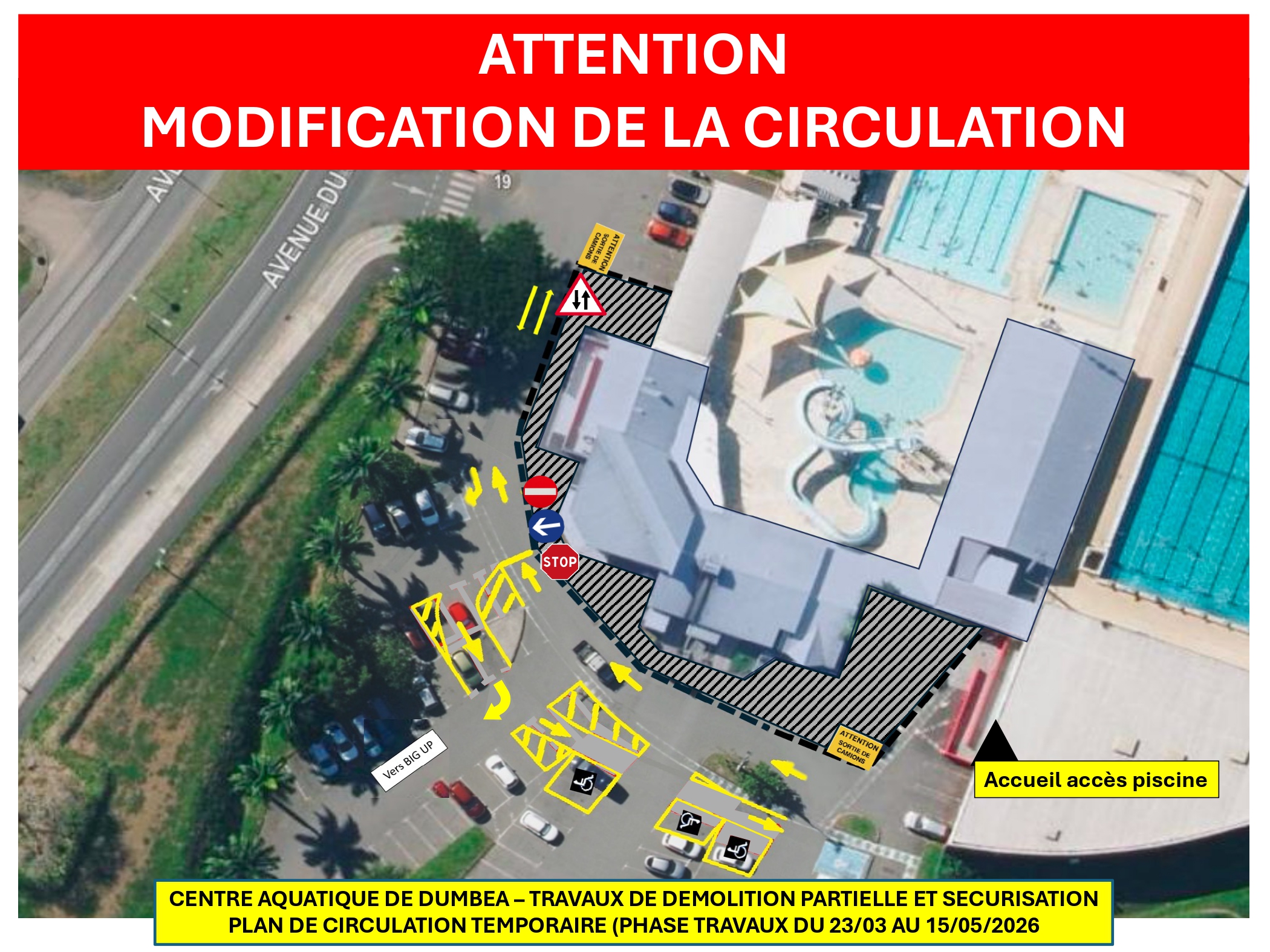 Dans le cadre de la durée des travaux, la circulation dans le parking sera modifiée.