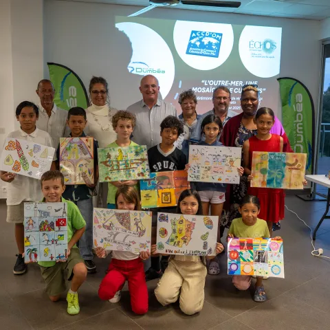 Image Cérémonie du lauréat du concours Echos d'Outre-Mer Un grand bravo à tous les participants, et une mention spéciale à Joline, dont le dessin a été retenu pour représenter la Nouvelle-Calédonie à Paris ! SUITE